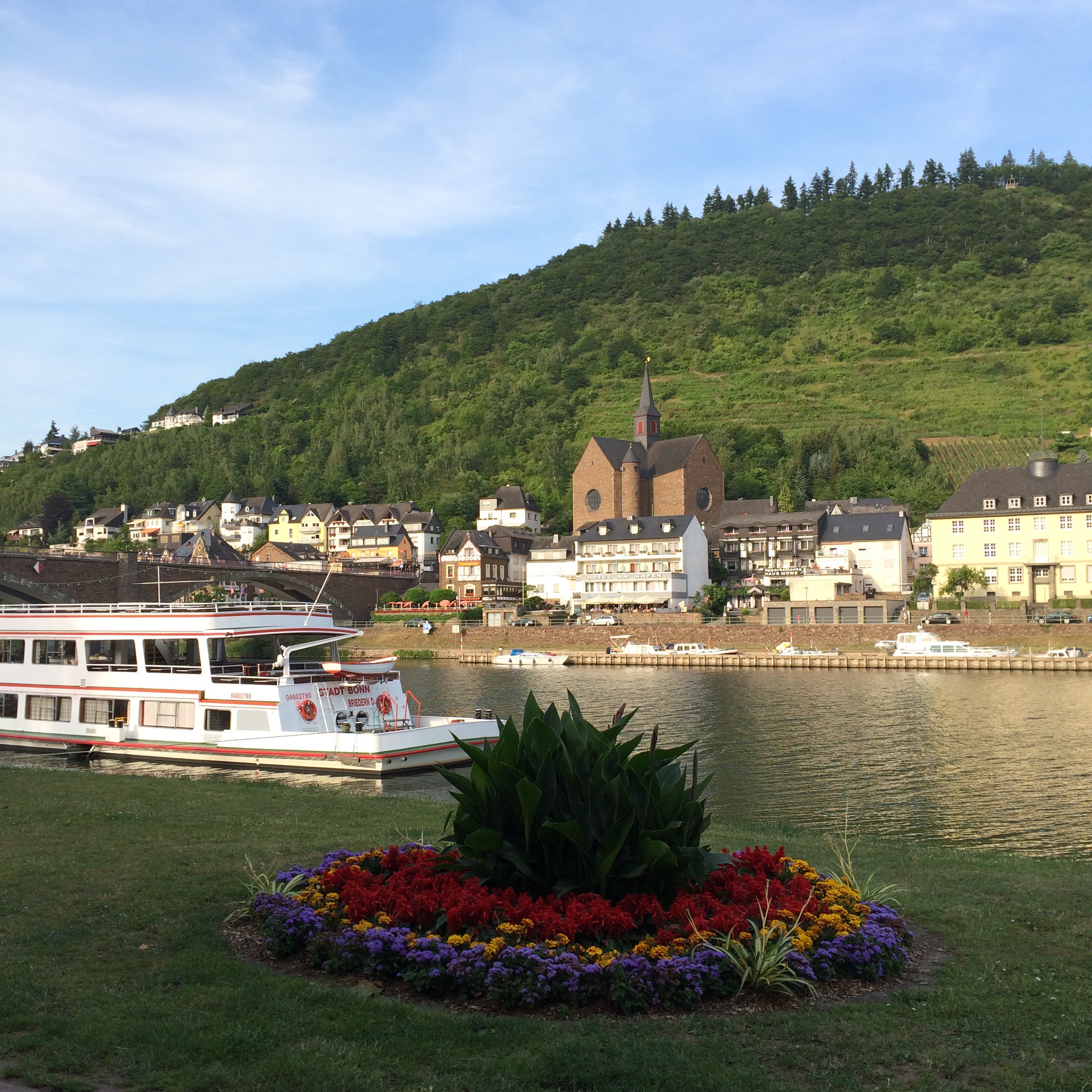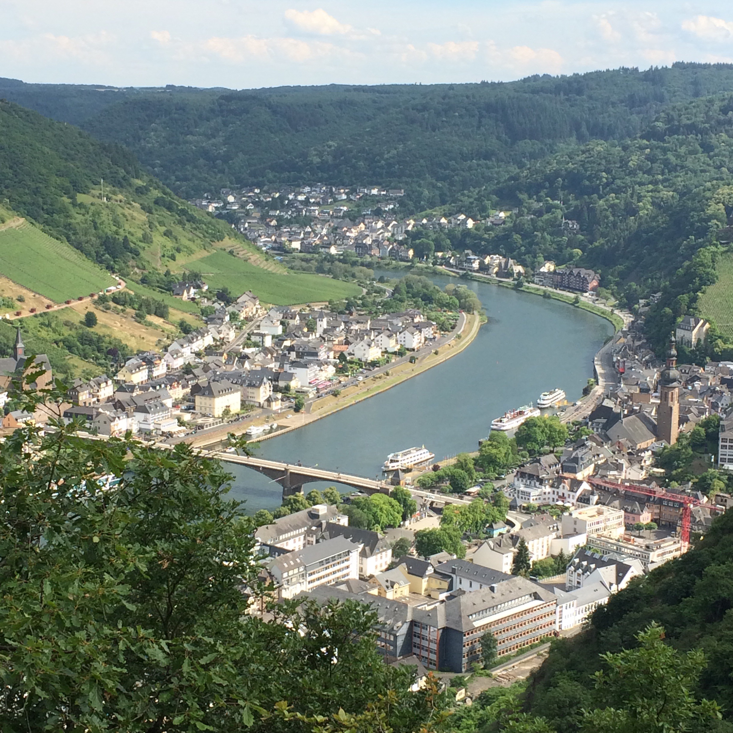 Mösel, it’s a long river in Germany. Along that river are very nice places too. It is surrounded with mountains, wine gardens and little towns. We ended up staying in Cochem.