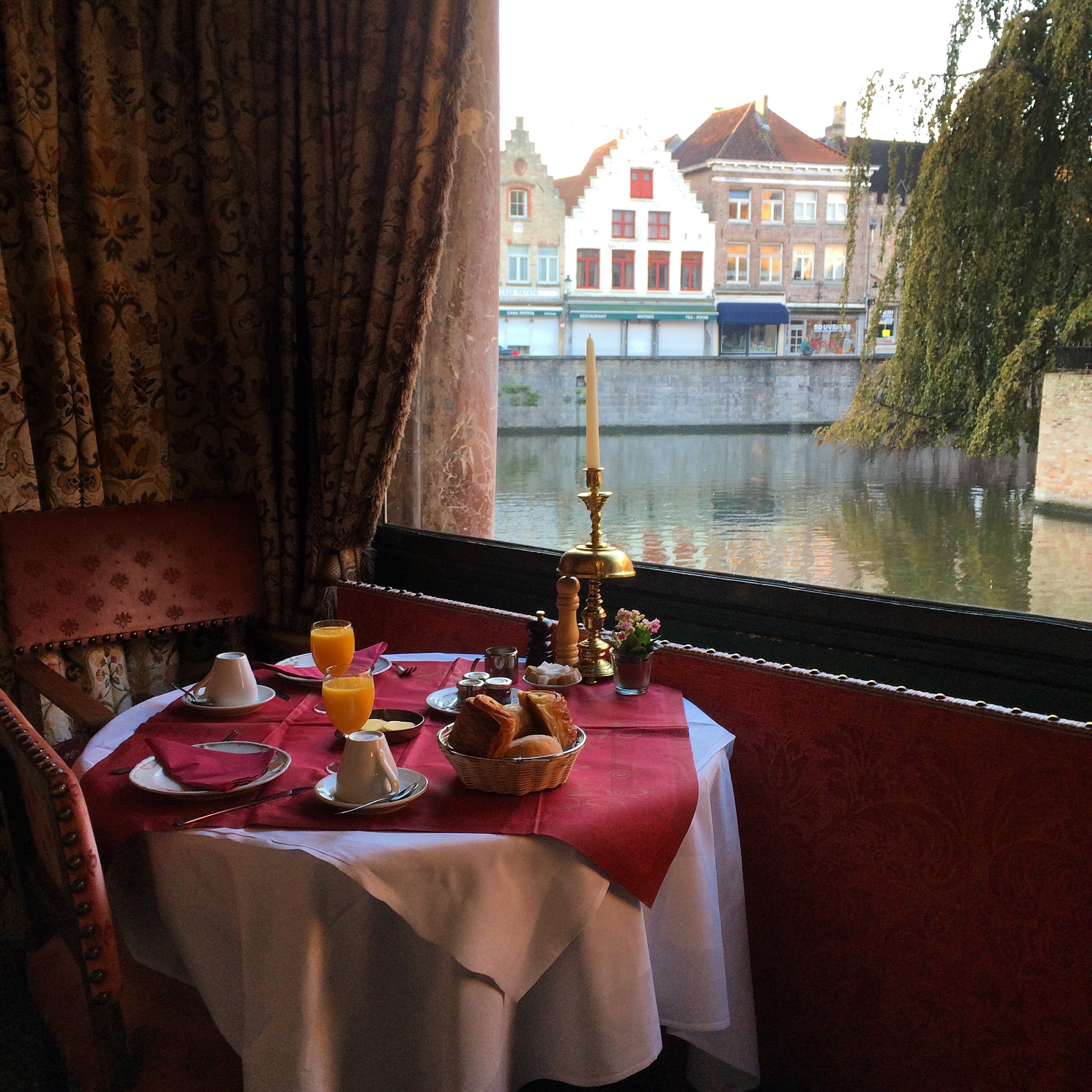 We arrived late in Brugge and found this hotel that is near the canal, it’s called Duc de Bourgogne We werent sure at first if it is a hotel or a restaurant but it turns out to be both. Upon entering the hotel, the staff greeted us and was friendly enough to make arrangements eventhough we dont have any reservations. We ended up staying 3 nights when we only booked for a night. We got 2 different rooms. The first one we got was a smaller room but have a great view of the canal. We considered ourselves lucky to get the room in such short notice. The bed was ok and the room is clean. You can also say that the hotel is already old, but they have an amazing classical feeling of the hotel. But after spending our first night at bars we decided to book the room again in the morning, they told us that our room is already reserved for the next visitor and because of that, they told us that they will give us a different room. The next room they gave us was their biggest room for the same amount of price. We were so happy and at the same time gave us that wow factor! The suite is big, it has a big bed, sofa chairs, a tub and shower and of course a very big view of the canal. Nice windows and relaxing feeling.