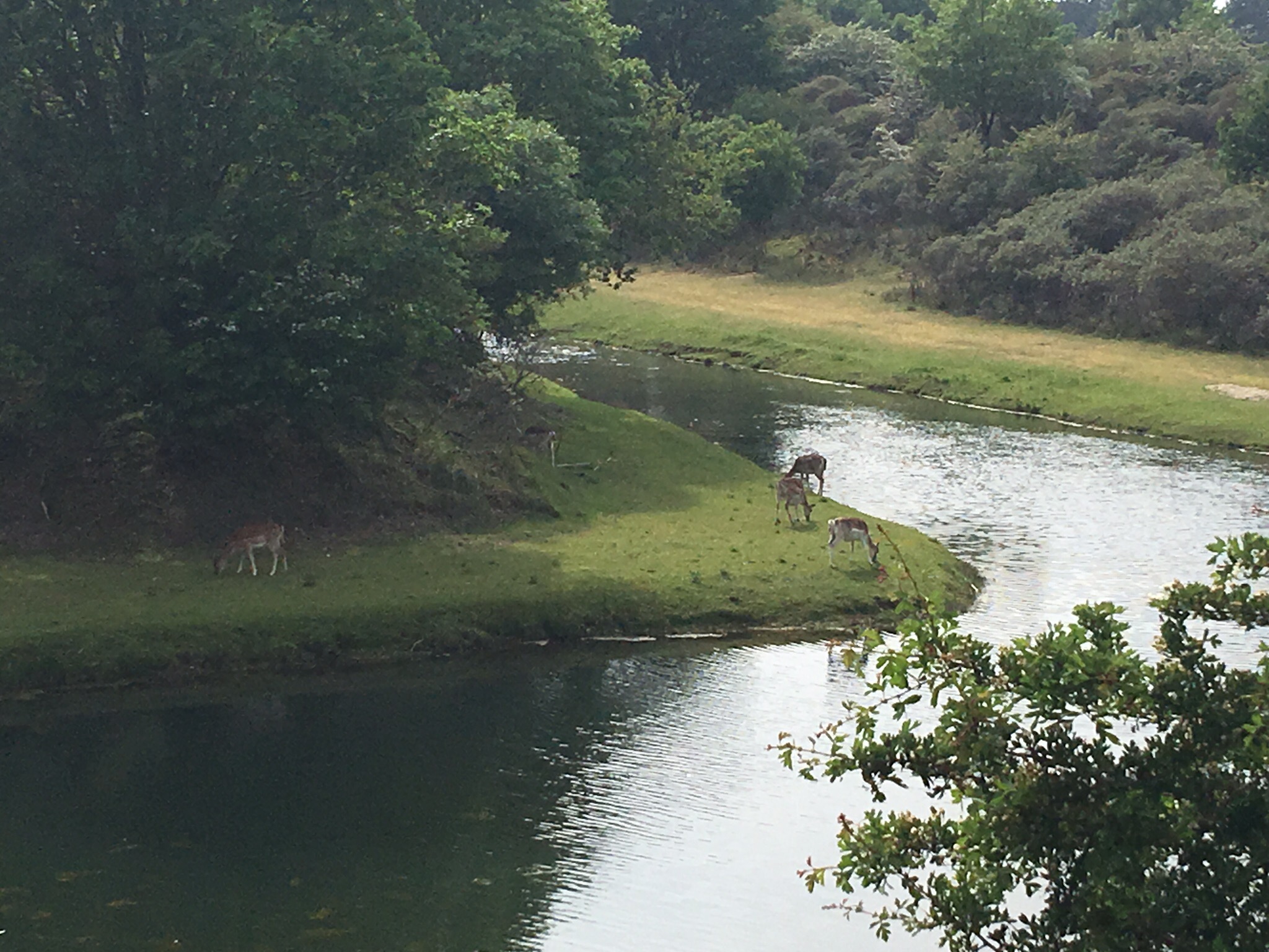 The things that I love about this place are that the deers are walking freely around, and they are not only some but it’s a bunch of them and the calming little lake.
