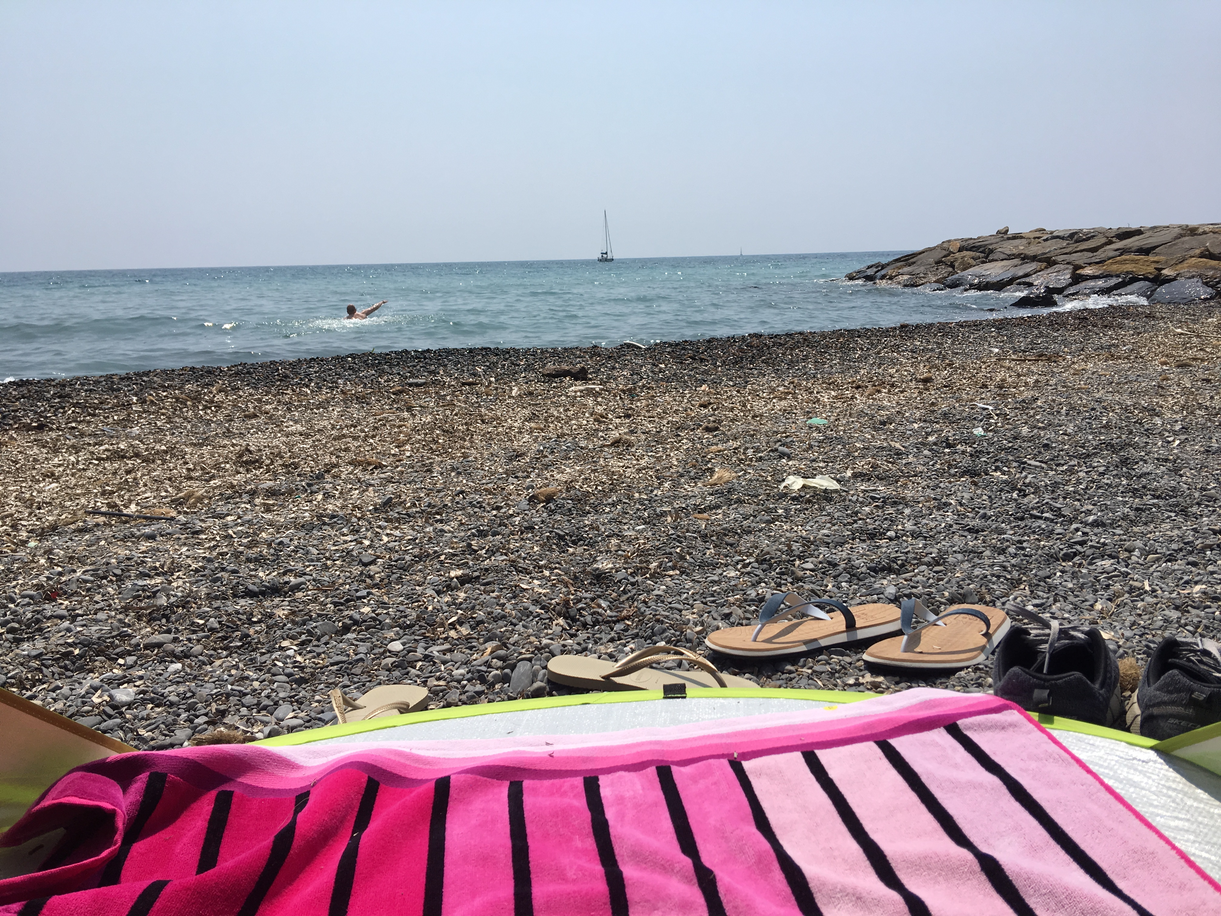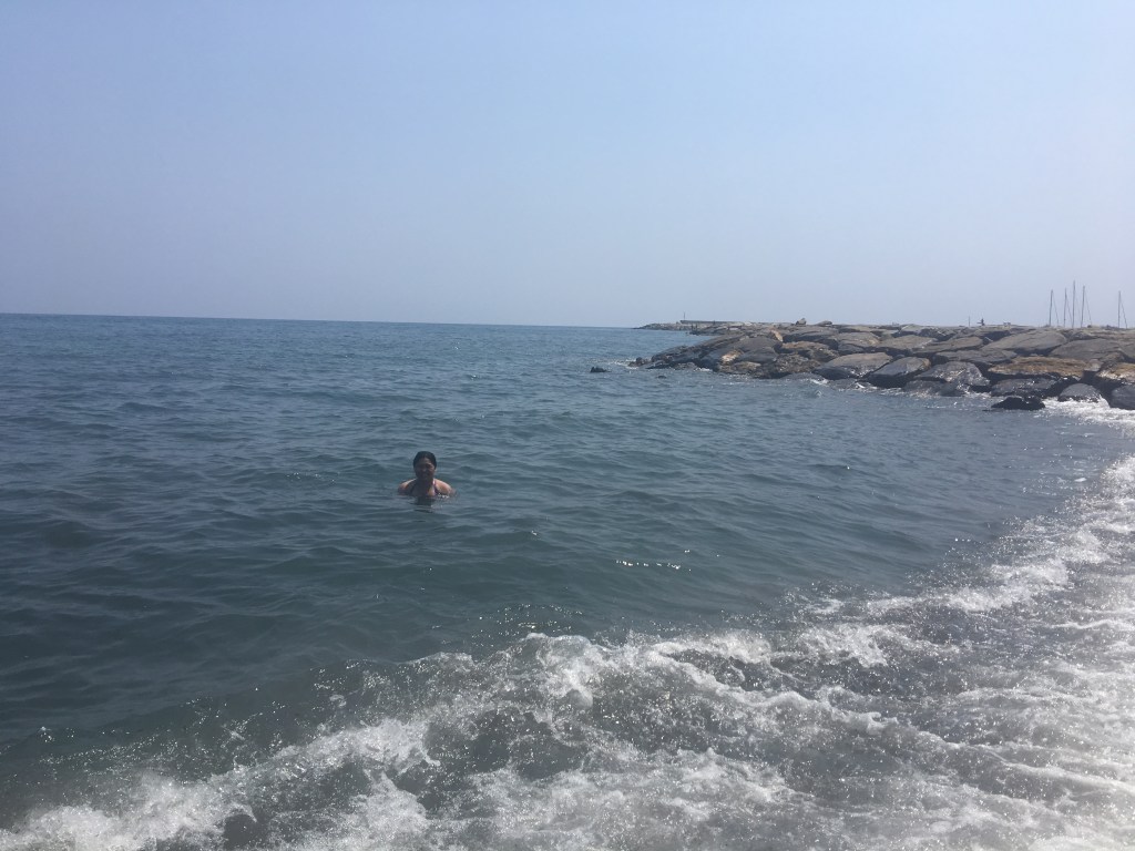 Today we decided to take it slow. The first thing we did after waking up was getting us some groceries for breakfast. After eating our breakfast we decided to finally try the sea and beaches. We were in San Lorenzo, it was very difficult to find a parking space as everybody had the same idea to cool down on this hot day (31 degrees celcius), So we decided to look for a less crowded beach and luckily we found one with a spot to park our car. We brought our own tent to protect us from the sun, it made it tolerable to be in this heat. The water was warm, we loved the dip. The only thing I did not like was that there were a lot of stones under our feet while walking. So if you are going there, bring some beach shoes! We stayed for 3 hours at the beach. After that we went back to our house.